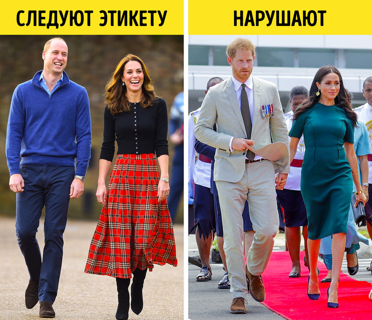 Формально не існує правила, що забороняє триматися за руки. Тим не менш британська сім'я виховується по суворому допустимому етикету, згідно з яким публічний прояв почуттів є неналежним. Тому Кейт і Вільям не тримаються за руки, не обнімаються і не цілуються при всьому чесному народі. Саме вони є найбільш наближеними до престолу людьми і повинні вести себе відповідно, щоб не зганьбити честь чинної королеви Єлизавети II.