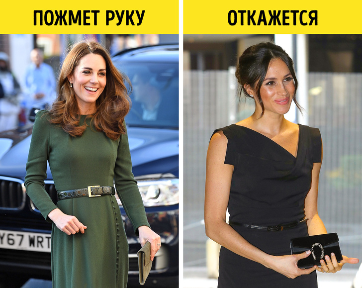 Королівський дрес-код диктує принцесам Кейт і Меган правила не тільки з приводу одягу, а й аксесуарів. Молоді жінки повинні ходити з маленькою сумочкою, яка відповідає поряд і дозволяє своїй власниці в будь-який момент потиснути руку іншій людині або ж, навпаки, красиво уникнути цього (клатч тримається спереду двома руками). Крім того, клатч використовується, щоб не потрапити в незручну ситуацію. Наприклад, при виході з машини їм прикривають декольте.