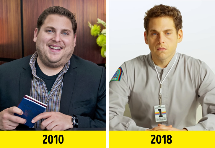 Як ви можете помітити, зірковий актор фільмів «Вовк з Уолл-стріт», «Мачо і ботан» і «Втеча з Вегаса» сильно схуд. Зміни торкнулися не тільки зовнішності, але і його амплуа: в 2018 році вийшов серіал «Нетфликса» «Маніяк», в якому Хілл зіграв вкрай депресивного персонажа з шизофренічним розладом, а до кінця року і зовсім виступив в ролі режисера з картиною про юних скейтбордерів «Середина 90-х» (яку, до речі, вже назвали одним з кращих дебютів 2019 року).