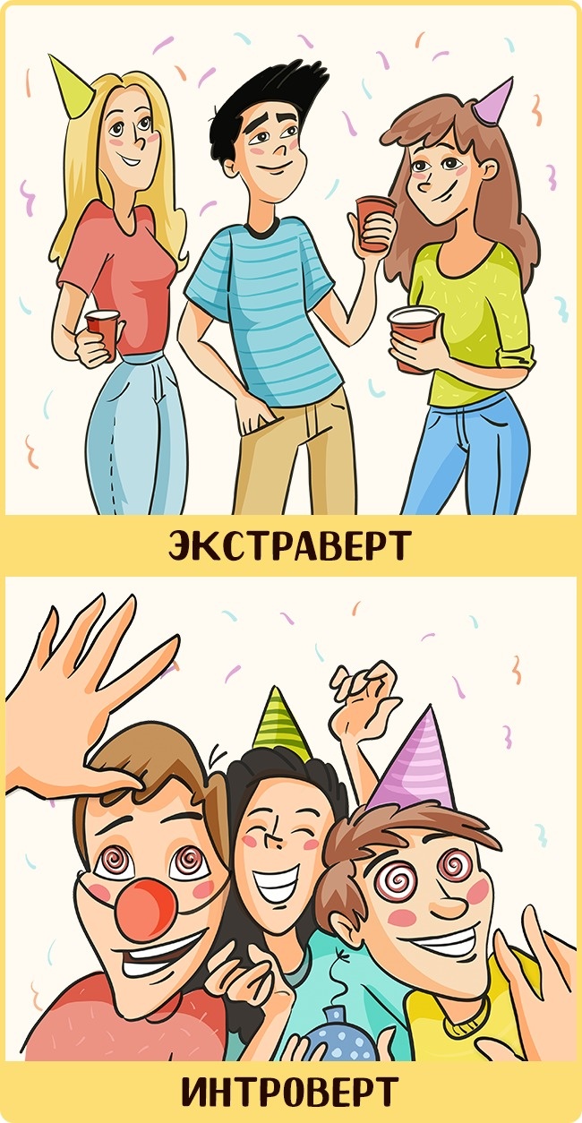 Всім відомо, що інтроверти і екстраверти сприймають світ по-різному. Ми в Social.org.ua вирішили проілюструвати ці відмінності на конкретних прикладах.