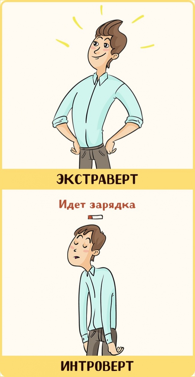 Після цілого дня бурхливого спілкування, екстраверт все ще сповнений сил, а інтроверт, прямо скажемо, не дуже