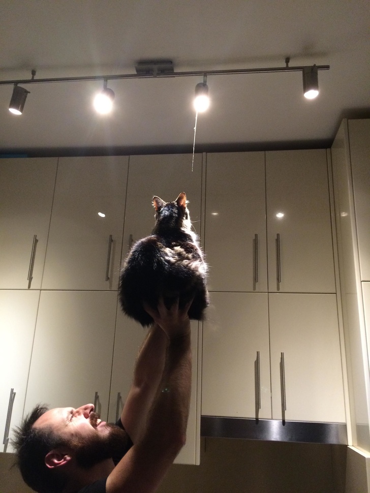 14. «Просто мій чоловік використовує нашого кота як віник для пилу, щоб зняти павутину зі стелі»