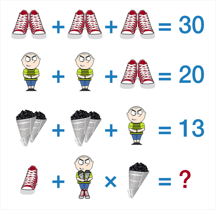Такі головоломки дратують — і не тому що не виходить вирішити просте рівняння, а тому що в умовах не сказано, що означає поєднання предметів. Як інтерпретувати гопника в кедах? Це гопник плюс кеди? Або гопник, помножений на кеди? А може, корінь з гопника ступеня кедів?