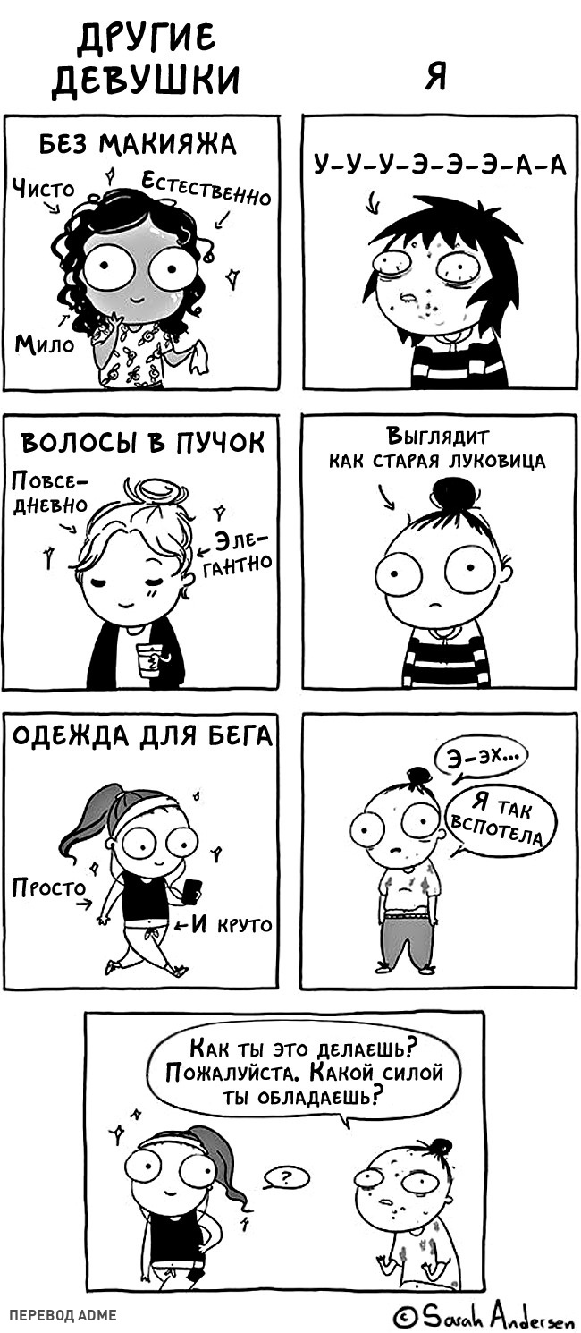 Бути жінкою дуже нелегко. І це головна тема коміксів Сари Андерсон, яка малює життєві і позитивні ілюстрації, знайомі кожній дівчині.