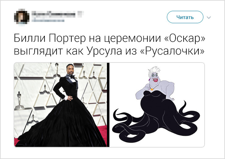 Американський актор Біллі Портер на церемонії «Оскар-2019» шокувала всіх своїм вбранням: він з'явився на червоній доріжці в пишній сукні-смокінгу. Дизайнером вбрання став Крістіан Сириано — переможець 4-го сезону популярного американського шоу «Подіум».