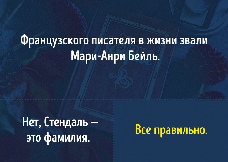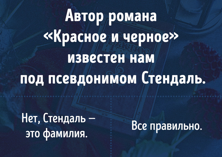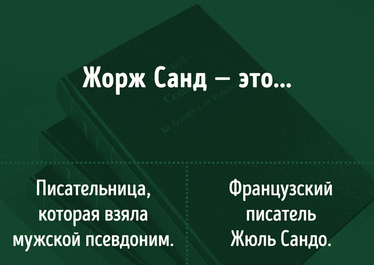 9–12 правильних відповідей. Ви прекрасно розбираєтеся в біографіях письменників, можете без запинки вимовити справжнє ім'я Жорж Санд і навіть розповісти, яким чином той чи інший літератор вибрав собі псевдонім. Так тримати!