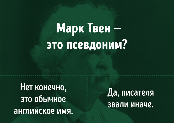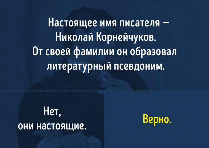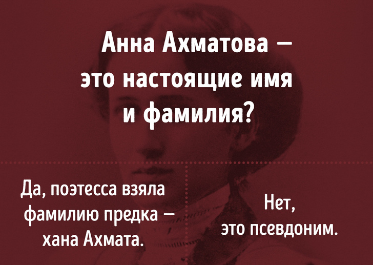 5–8 правильних відповідей. Ви непогано поінформовані про те, хто написав ваші улюблені книги, в загальних рисах знаєте, в яку епоху творили автори, і для вас не секрет, яку носила прізвище Анна Ахматова і як насправді звали Марка Твена.