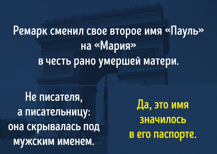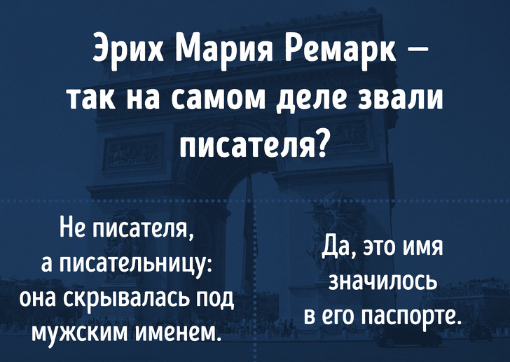 0–4 правильних відповіді. На жаль, сьогодні вам не пощастило. Ви не надто добре орієнтуєтеся в біографіях письменників, але, напевно, в курсі, що Ремарк - це чоловік. Можливо, перш ніж почати черговий твір, вам варто прочитати кілька рядків з біографії автора.