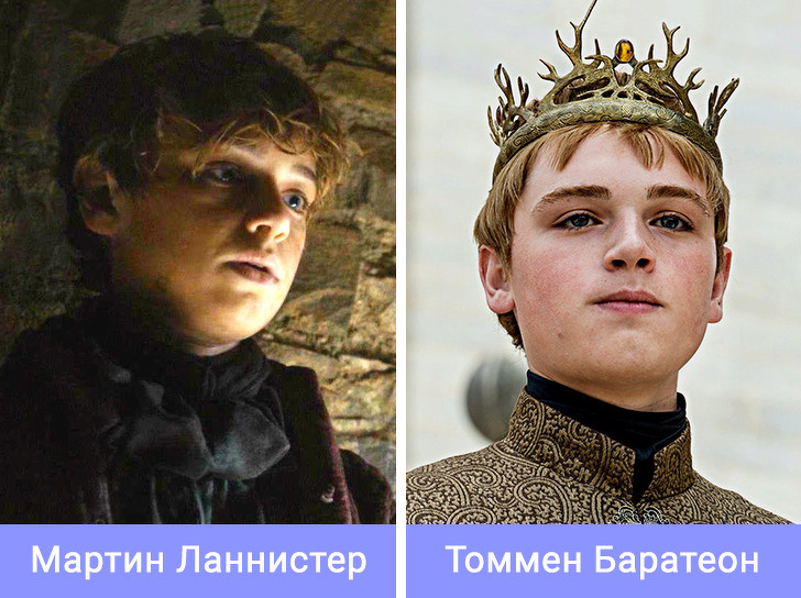 - Дін-Чарльз Чепмен виконав відразу дві ролі. Спочатку актор зіграв другорядного персонажа — Мартіна Ланністеров, сина Кивана Ланністеров, але пізніше був затверджений на роль Томмена Баратеона.