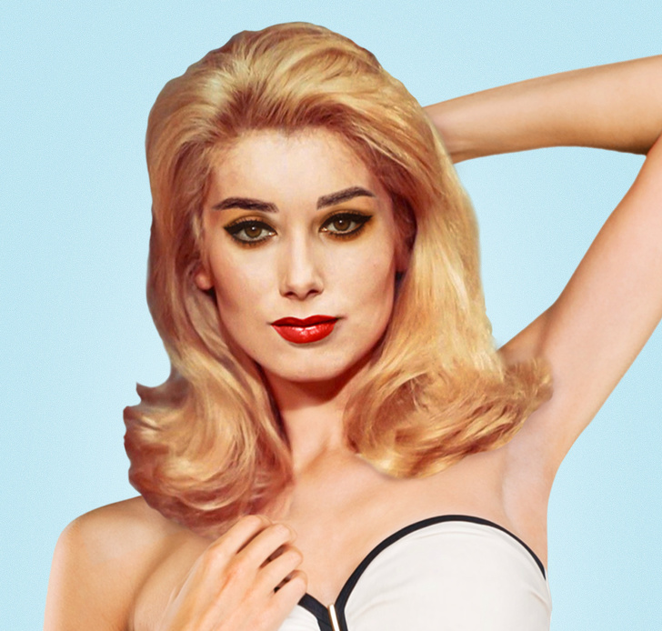 У моделі овал обличчя Джини Лоллобриджиди, очі Софі Лорен, ніс Грейс Келлі, брови Одрі Хепберн і губи Елізабет Тейлор. Шия Бріжит Бардо і зачіска Картин Деньов.