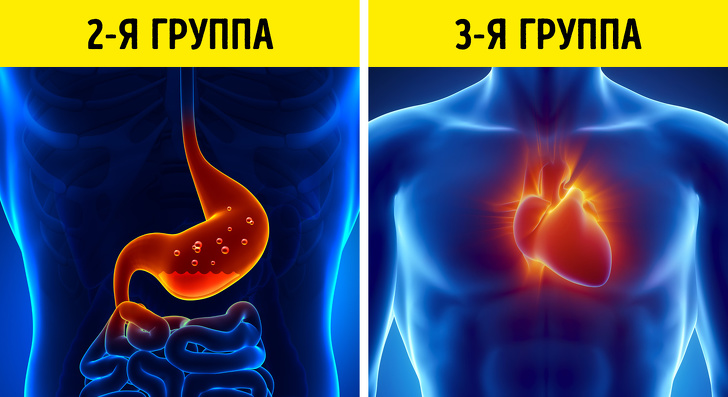 Крім того, у людей з 2-ї і 3-ю групами крові вище ризик розвитку серцево-судинних захворювань: у них частіше діагностують інфаркт міокарда, інсульт, тромбоз.