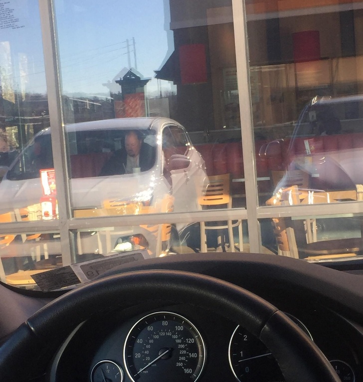 19. Таке відчуття, ніби цей чоловік сидить обідає в припаркованій машині поряд