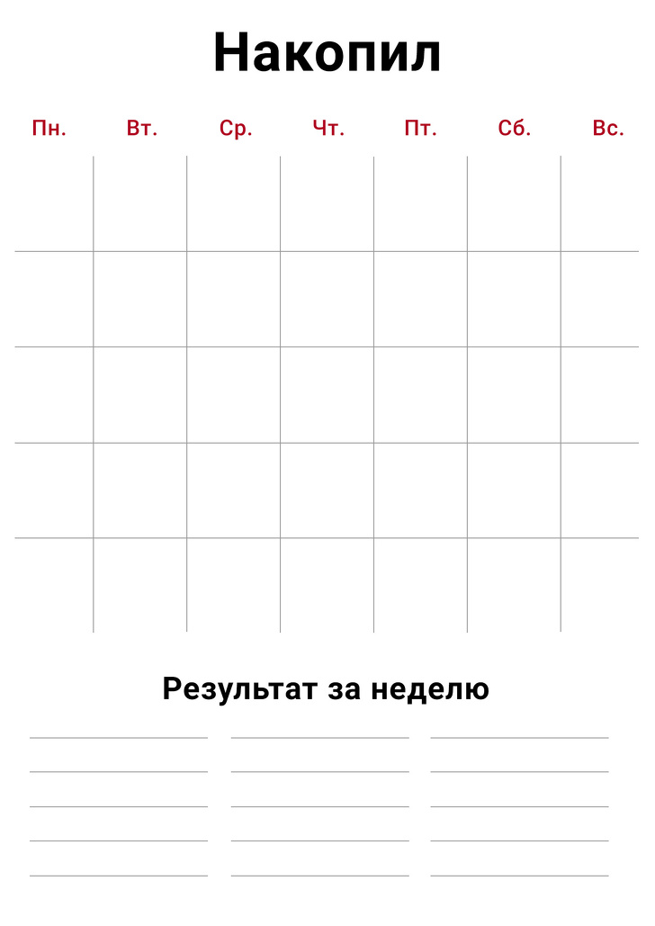 - Роздрукуйте лист і відзначайте в кінці дня ваші успіхи в утриманні від ниття у вигляді смайлика. А внизу списку фіксуйте результат за всю тиждень.