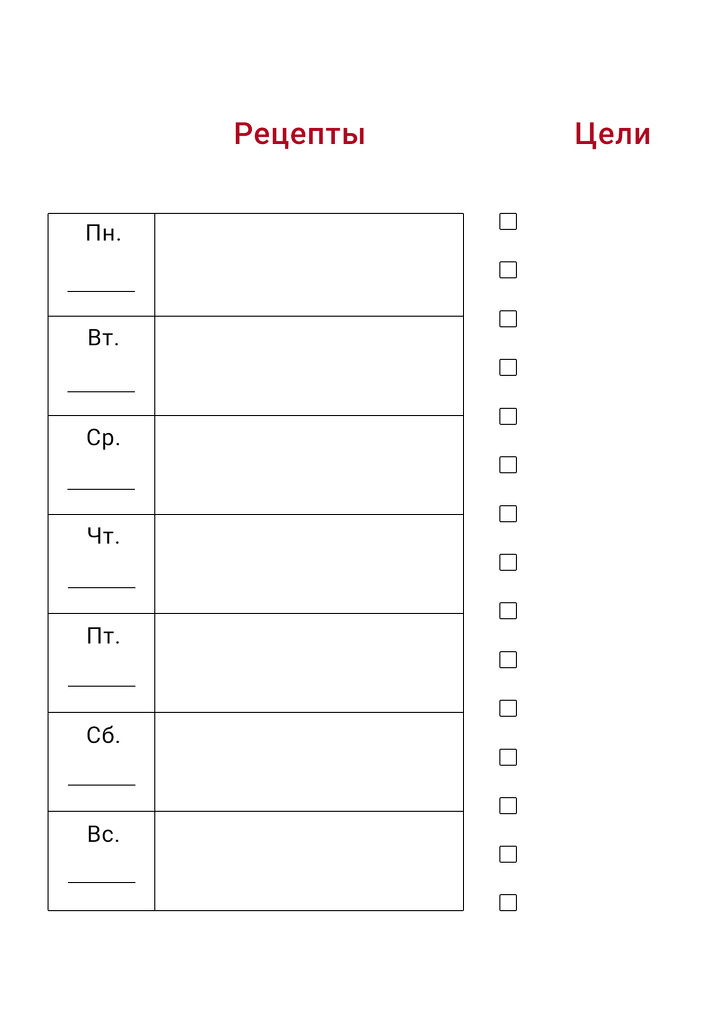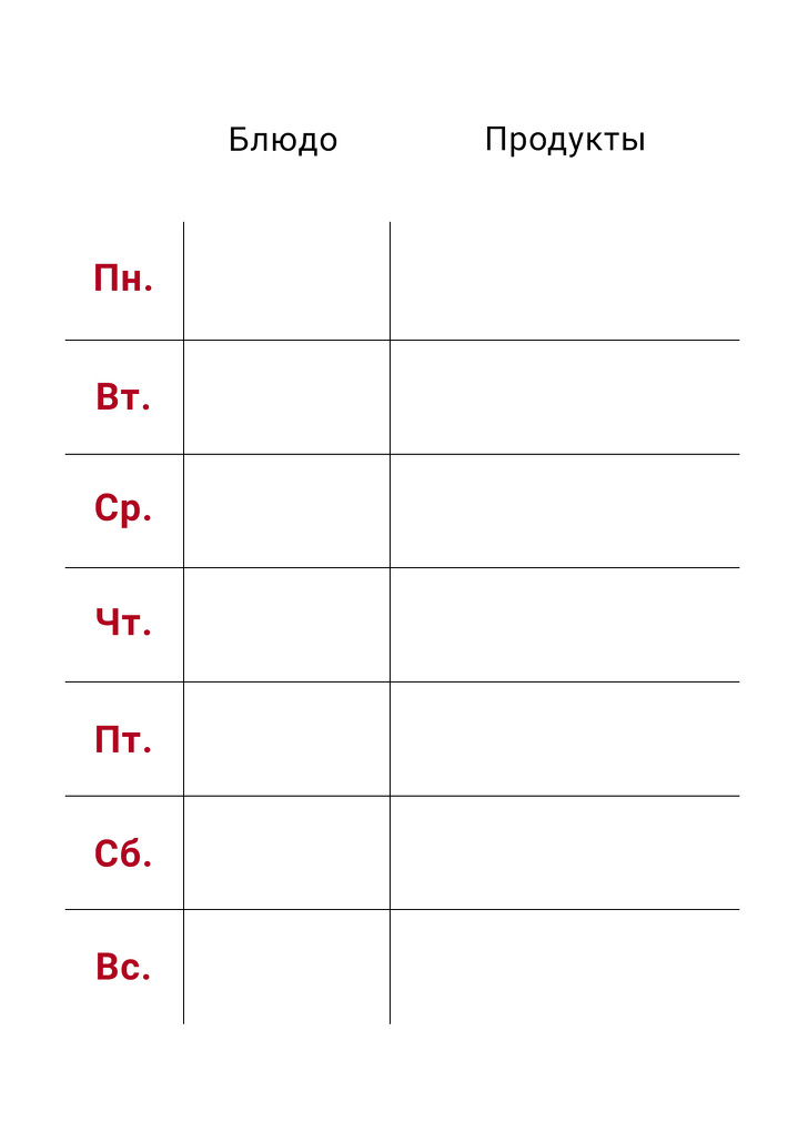 - Перечитайте кулінарні книги, сайти і складіть меню на тиждень. Зробіть замітки щодо інгредієнтів, попередньої обробки та часу приготування.