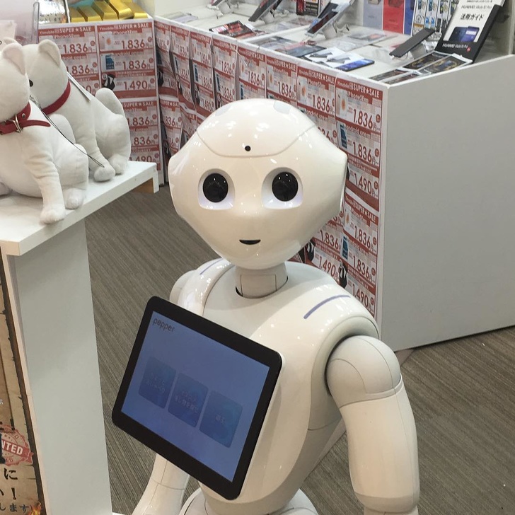На знімку — робот Пеппер. Такі машини допомагають покупцям у багатьох японських магазинах.