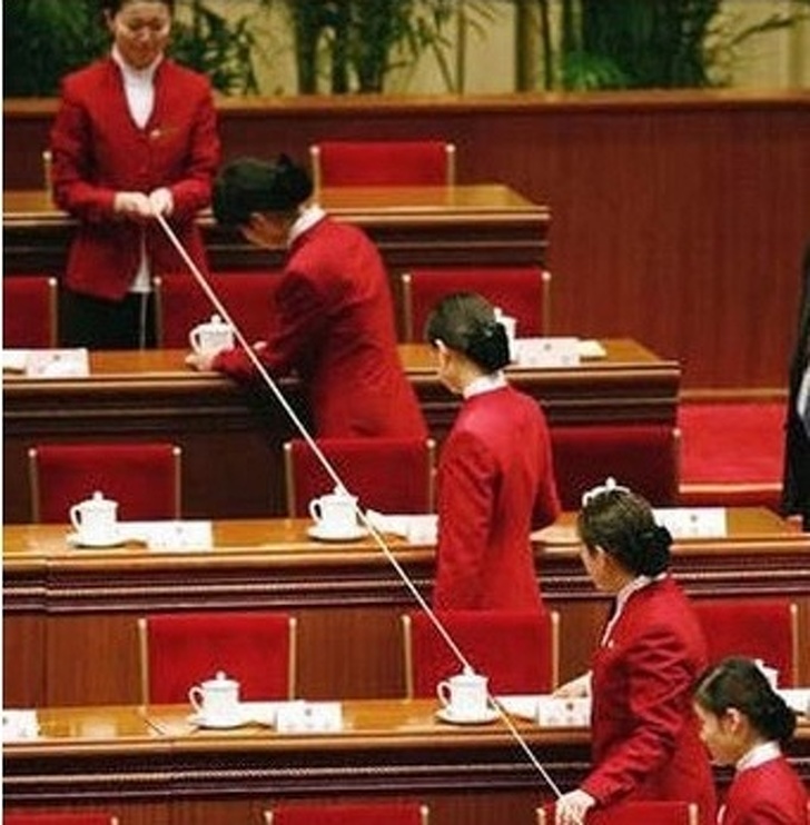 На знімку: жінки в японському парламенті перевіряють, наскільки рівно стоять чашки.