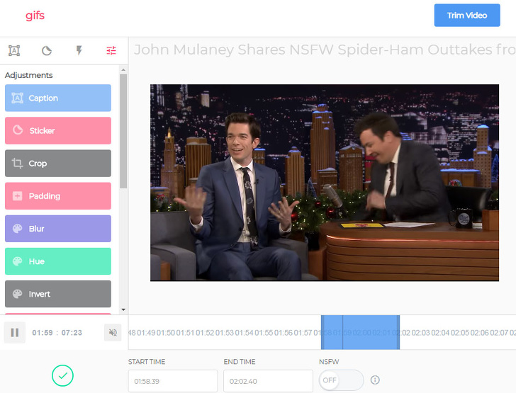 Якщо ви хочете перетворити певний уривок з відео в діфку, зробити це можна парою кліків. Під час перегляду відео додати до URL в адресному рядку браузера слово gif прямо перед словом youtube. Тобто адресу у вас буде починатися так: www.gifyoutube.com/watch?v=...... Вас перекине на сайт gifs.com, де ви можете налаштувати деякі параметри майбутньої гифки, а також встановити тривалість gif, обрізати, додати підпису та інше. Так, щоб скачати отриману діфку, треба зареєструватися (займе у вас менше хвилини).