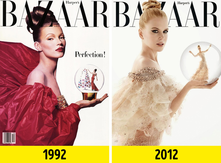 І знову Harper's Bazaar, переснявший чергову стару обкладинку. В оригінальному номері на обкладинці позувала юна Кейт Мосс для новорічного номера. Через 20 років австралійський Harper's Bazaar зняв для аналогічної обкладинки Ніколь Кідман в образі принцеси. Тоді вона займалася промоушеном фільму «Принцеса Монако».