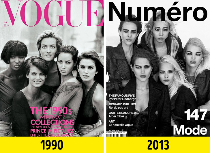 Своєю обкладинкою для Vogue знаменитий фешен-фотограф Пітер Ліндберг ознаменував «еру супермоделей» і відобразив головних моделей того часу: Наомі Кемпбелл, Лінду Євангелісту, Тетяну Патіц, Крісті Тарлінгтон і Сінді Кроуфорд. Пізніше той же Ліндберг перезняв свою відому обкладинку для французького видання Numéro з сучасними топ-моделями: Сашею Лусс, Кетрін Макніл, Емелін Валад, Су Джу Парк і Дафной Груневельд.