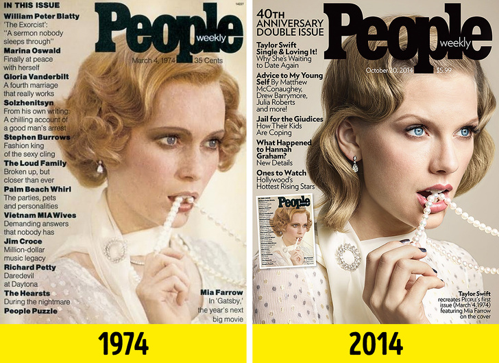 В середині 70-х вийшов перший номер журналу People. На обкладинку тоді потрапила відома модель і актриса Міа Ферроу в образі Дейзі з «Великого Гетсбі». В той час до виходу на великі екрани готувався фільм за мотивами роману. Коли журнал відзначав 40-річний ювілей, видавці вирішили перезняти першу обкладинку з Тейлор Свіфт, яка представляла свій новий альбом «1989».