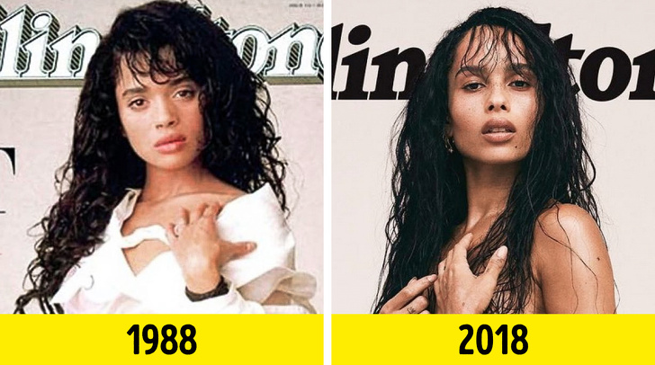 Оригінальна обкладинка була знята в кінці 80-х. Тоді актриса Ліза Боні, зірка серіалу «Шоу Косбі», знялася в досить незвичному вигляді. 30 років потому, її дочка, актриса Зої Кравіц, вирішила повторити образ матері, при цьому зробивши його ще більш зухвалим: вона позувала без сорочки.