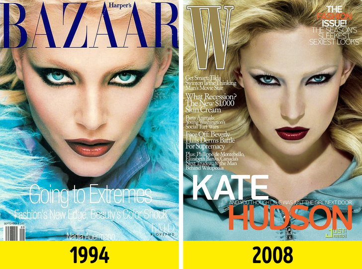 Кілька років тому актриса Кейт Хадсон знялася для обкладинки вересневого випуску журналу W Magazine. Образ Хадсон — це явна відсилання до культового вересневого випуску Harper's Bazaar, де зображена модель Надя Ауерманн, сфотографована знаменитим Патріком Демаршельє. Образ повторений до найдрібніших деталей: від драматичного макіяжу очей і бордової помади до пронизливих блакитних очей і практично безбарвних брів. Мабуть, видавці W Magazine таким чином віддали данину поваги знаменитої обкладинці 1994 року.