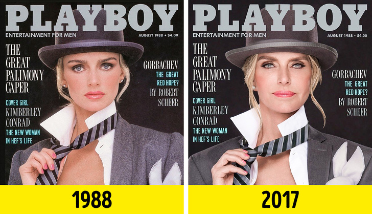 У минулому році Playboy, один з найпопулярніших чоловічих журналів, відтворив обкладинки своїх найбільш відомих номерів, які виходили з 70-х по 90-ті роки. Головна фішка зйомок — моделі, адже позували фотографам ті ж самі дівчата, що і 30 років тому. Ця ідея належить синові засновника знаменитого видання Куперу Хефнеру. На одній з обкладинок позує колишня дружина засновника Playboy Х'ю Хефнера і мати Купера — Кімберлі Хефнер. Всього було зроблено 7 таких обкладинок.