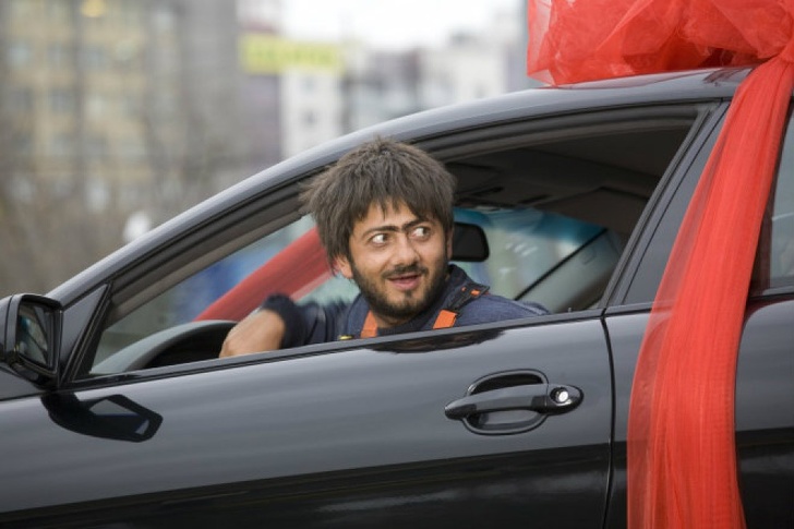 Затюканий дружиною персонаж, який вечорами підробляє таксистом. Носить окуляри, светр і сорочку з коміром назовні. Зовні схожий на Женю Лукашина.