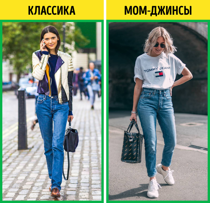 - Класичні джинси середньої глибини посадки, добре сидять на стегнах, але не обтягуючі, з прямими штанинами. Класика тому й класика, що практично не має протипоказань.