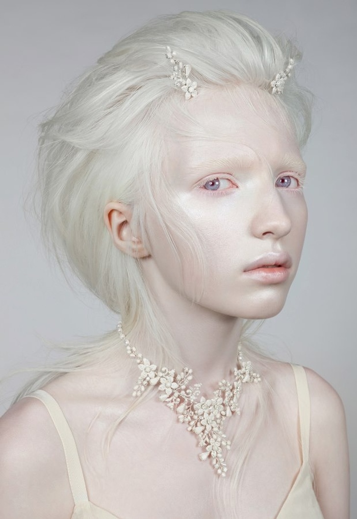 Цю неймовірну 16-річну модель відобразив талановитий фотограф Данило Головкін. На перший погляд вона здається фарфоровою лялькою, але насправді у цієї дівчини альбінізм — рідкісне генетичне порушення, при якому в очах, волоссі і шкірі людини немає ні краплі пігменту. Дівчину звуть Настя Кумарова; незрівнянна зовнішність дозволила їй стати знаменитою моделлю.