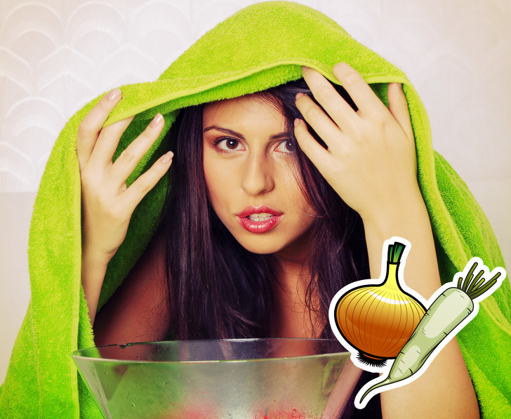 - Цибульна. Поріжте головку цибулі на 3-4 частини, залийте водою і поставте на вогонь. Коли вода закипить і почне випаровуватися, подихайте цим пором через ніс. Процедуру можна виконувати щодня протягом декількох днів.
