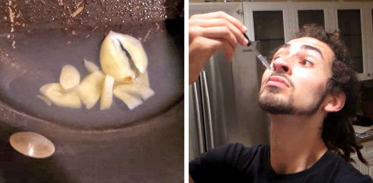 - Часниковий сік. Щоб позбутися від закладеності носа, потримайте одну головку часнику на пару, щоб вона трішки розм'якла, а потім вичавте з нього сік. У гострих випадках пропонується закапувати по 2 краплі соку в кожну ніздрю; у більш легких випадках або якщо ви ніколи до цього не вдавалися до такого засобу — по одній. Попередження: воно дійсно сильно пече.
