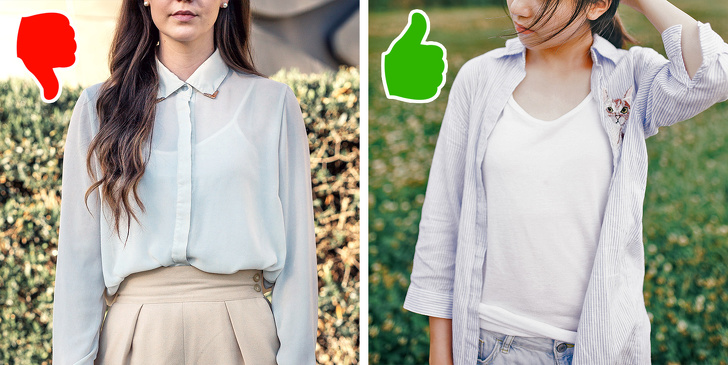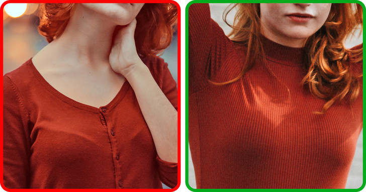 - Одягати сукню або топ з глибоким вирізом варто тільки в тому випадку, якщо у вас є бюстгальтер з поглибленим декольте.