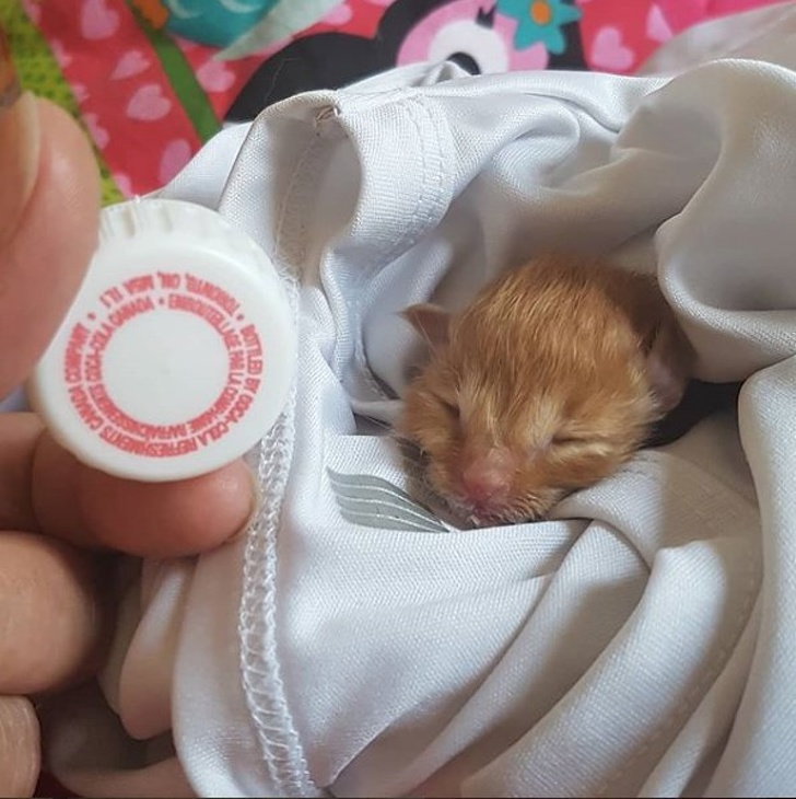 6. Голова новонародженого кошеняти розміром з кришечку