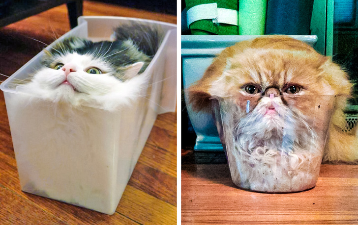 За визначенням з фізики, рідина — це речовина, яка вміє приймати форму судини, в якій знаходиться. Жарти жартами, але коти підходять під це визначення. Вони іноді ведуть себе як рідина і можуть приймати форму іншого твердого тіла.