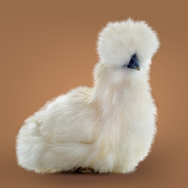 Вона схожа на м'яку іграшку. Але крім оперення, яке нагадує шовк, ця порода має кілька інших незвичайних якостей: у них чорна шкіра та кістки, сині мочки вух і 5 пальців на кожній нозі (в інших курок їх лише 4). А коштує таке диво $ 25 за штуку.