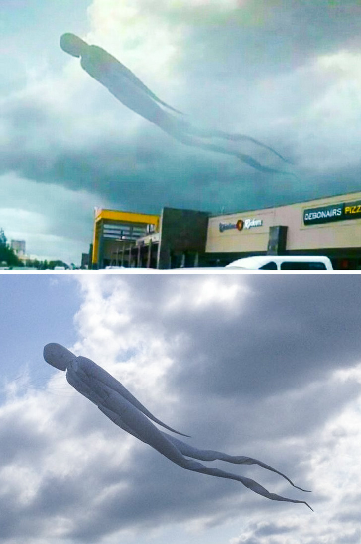 В минулому році по багатьом відомим новинним сайтам розійшлася фотографія, на якій була зображена гігантська фігура в небі над торговим центром в Китве (Замбія). Автор заявив: «Ми були шоковані. Хтось подумав, що це був бог, і почав поклонятися, а інші в жаху бігли».