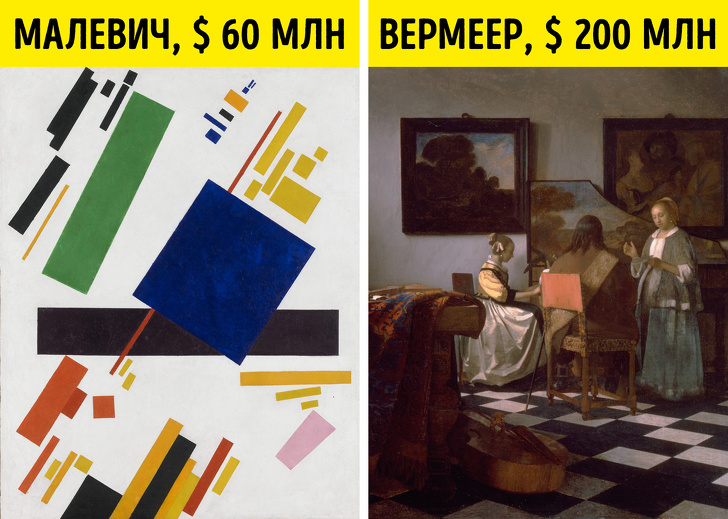 Голландського художника Яна Вермеєра сьогодні називають безцінним. Його пензлю належить не так вже багато картин — всього 36. Художник писав досить повільно. Зникла в 1990 році картина голландця «Концерт» зараз оцінюється приблизно в $ 200 млн. Рідкість і нечисленність полотен впливає на те, що ціни на них просто захмарні.