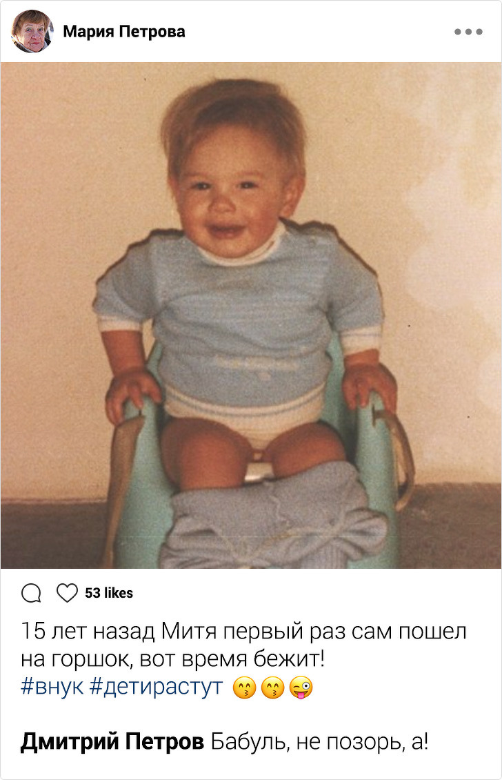 - Бабуся викладає все підряд, навіть такі фотографії, де її самої немає, — мене це дратує. Раніше я заходила в її аккаунт, щоб видалити деякі записи. Я багато разів говорила про це, а вона відповідає, що їй все одно, адже це її аккаунт і вона може робити те, що хоче. Чому бабуся це робить? Чому не може взяти і прибрати мене хоча б?