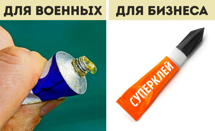Основа суперклею, речовину-ціаноакрілат, що була винайдена під час Першої світової війни в рамках експерименту. Потрібно було терміново придумати прозорий пластик для оптичного прицілу. Однак отримана субстанція нікуди не годилася, так як була жахливо липкою.