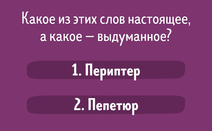 Російська мова здатна звести з розуму навіть філолога, і незважаючи на те, що кожен з нас говорить по-російськи вже не перший десяток років, ми сумніваємося, чи існують такі слова, як «периптер», «куздра», «карамора» або «вахмутузер». А ви як вважаєте?
