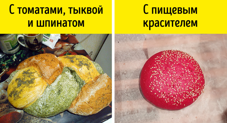 Різнокольорові булочки і хліб можуть назвати томатными, гарбузовим, шпинатними, «забувши» додати потрібний інгредієнт.