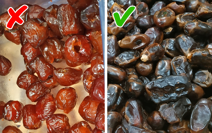 Чим менше у бактерій доступу до м'якоті, тим краще. Ось чому перевагу отримують сухофрукти з незайманими кісточками і хвостиками (порівняйте фініки на фото нижче).