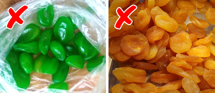 Все-таки сухофрукти — це мумії плодів. Щоб мумія мала гламурний вигляд, її треба чимось обробити. Під «ніж» в кращому випадку маємо на увазі діоксид сірки в допустимих концентраціях. «Правильні» сухофрукти зазвичай не ваблять блиском і насиченим кольором.