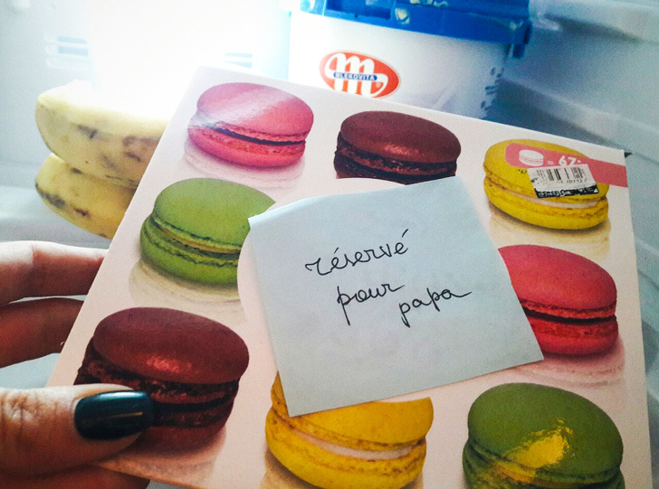 На папу ж ніяких табу в їжі не поширювалися. Деякі шоколадні десерти та солодощі в холодильнику були підписані Reservé pour papa («Зарезервовано для тата»).