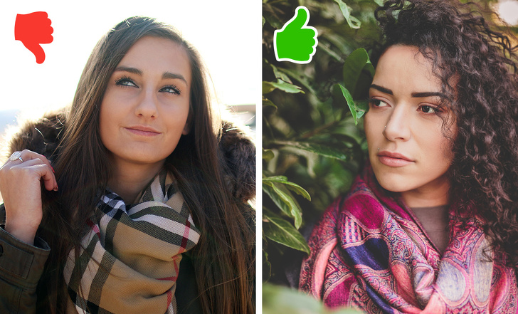 Більш популярними стають хустки, які можна елегантно носити на голову або вкривати ними шию. Якщо морози все ж сильні, віддайте перевагу вовняному шарфа, а не трикотажному.