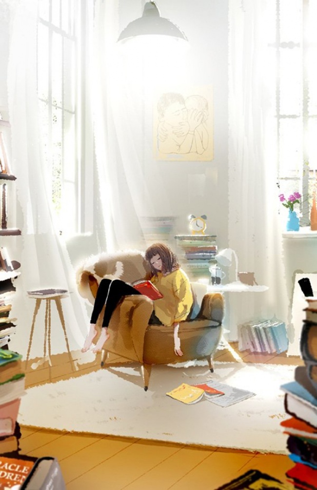 У метушні днів ми зовсім забуваємо про прості речі, які роблять нас щасливими. Корейський художник Джі-Хук Кім (Ji-Hyuk Kim) у своїх теплих і світлих ілюстраціях зобразив, із чого складаються наші моменти щастя: це звичайна прогулянка, зустрічі з близькими, щоденні клопоти, цікаві поїздки. На думку ілюстратора, щодня готує для нас хоча б один привід посміхнутися і щиро порадіти світу навколо.