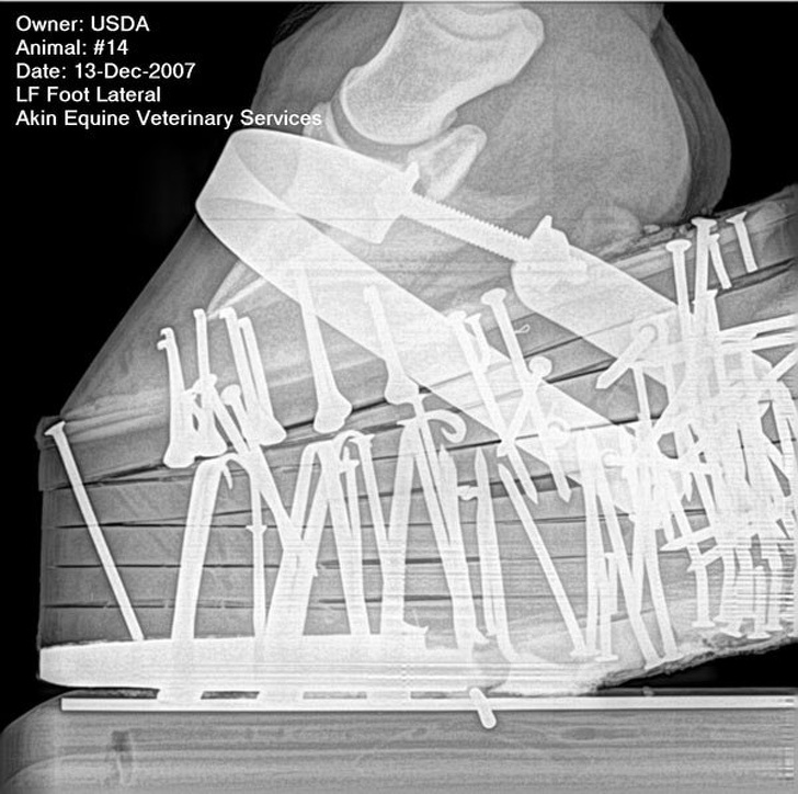 Такими підковами постачали коней, які виступали у спортивній ходьбі. До копиту кріпилася багатошарова підкова, з-за чого кінь був як би на платформі і постійно високо піднімала копита. Такий вид спорту порахували жорстоким, тому заборонили у багатьох країнах, так як це завдає тварині не тільки фізичні незручності, але й психічні.