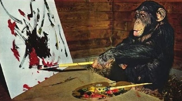 Картини були показані кращим мистецтвознавцям, і кожен з них хвалив ці яскраві авангардні роботи. Крім одного, який сказав: «Тільки мавпа могла це намалювати». І він виявився правий. Всі ці картини були намальовані 4-річним шимпанзе по кличці Пітер і спрямовані в галерею, для того щоб перевірити мистецтвознавців.