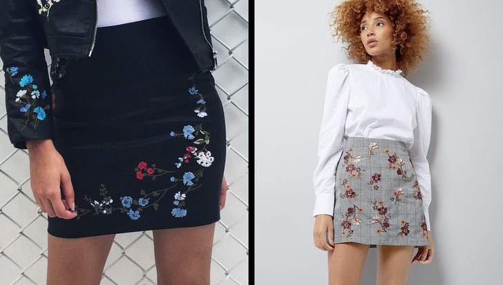 Звичайний візерунок в квіточку вже набрид, саме тому спідниці з об'ємною вишивкою стають все популярнішими. Фасон і колір на ваш смак. Можна вибрати варіант з симетричними квітами праворуч і ліворуч або обмежитися несиметричним візерунком.